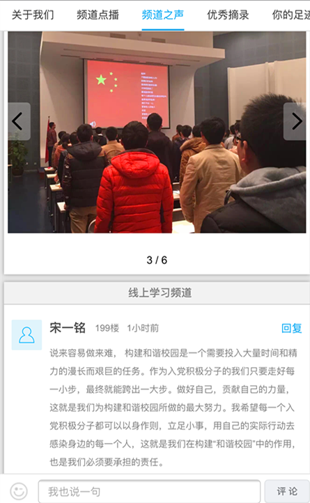 讨论以小组形式发布全体讨论结合的形式相结合进行,每个小组负责一个话题的主持工作,此举不但达到了让大家各抒己见、交流探讨的效果,更使每位小组成员在此过程中以主人翁的姿态参与话题讨论,培养责任意识的同时也增强了归属感。在第一期的话题讨论“建党95周年以来中国共产党党史上重要的人物和事迹”一经发布便立刻引发学生的热烈讨论。该话题旨在使全体同学通过对党史和优秀共产党员的回顾,获得一种榜样力量和精神支撑,也对自己未来的发展方向产生一个更加具象的认知。