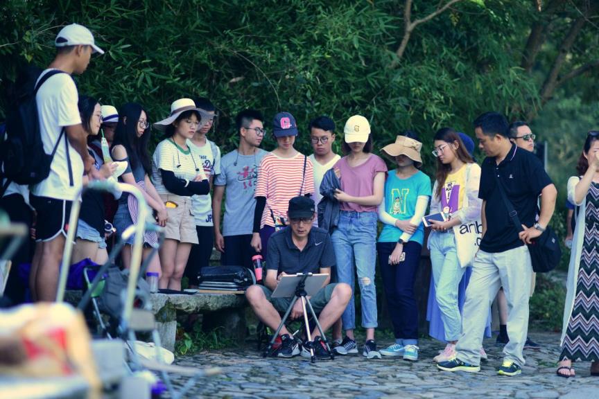 教师们教学生取景、指导绘画