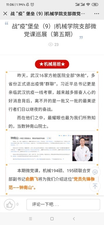 机械博士党支部史彬参与社区值班,协助居委会做好社区人员进出登记工作;机械183硕党支部刘建辉每天定期给电梯按钮消毒,以降低社区人员使用电梯出现感染的风险;工业设计专硕党支部陈晓燕轮岗值班量体温,她表示:“全心全意为人民服务一直都是一名党员应该牢记在心的初心使命,通过基层抗疫工作,我更加坚定了这一信念。尽管每天早晨5点多便起床上岗,但看着全国确诊病例不断下降,我越发觉得自己的辛苦是有价值的。”