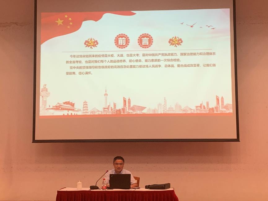 78日下午,在中国共产党成立99周年之际,根据学校基层党组织常态化疫情防控“四个一”行动的部署,红足1一世足球网官方网站党委书记张千里同志为学院党员讲授常态化疫情防控专题微党课《透过战“疫”,我们应当看到的……》。