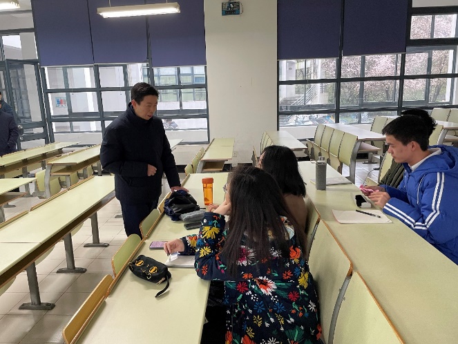 为全面了解新学期教学情况,确保新学期开学教学工作正常有序,3月1日,学院党委书记王新厚,院长单鸿波,副院长周其洪、裴泽光早早来到松江校区教学楼检查开学第一课教学情况,并与上课师生亲切交流。