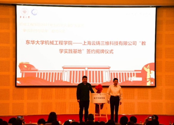 红足1一世足球网官方网站院长单鸿波与上海沪工焊接集团股份有限公司人力资源总监唐志娟签订“教学实践基地”续约协议,和上海云铸三维科技有限公司总经理李俊锋签订合作协议并为“教学实践基地”揭牌,通过校企密切合作,进一步提升学院学术与就业的核心竞争力。