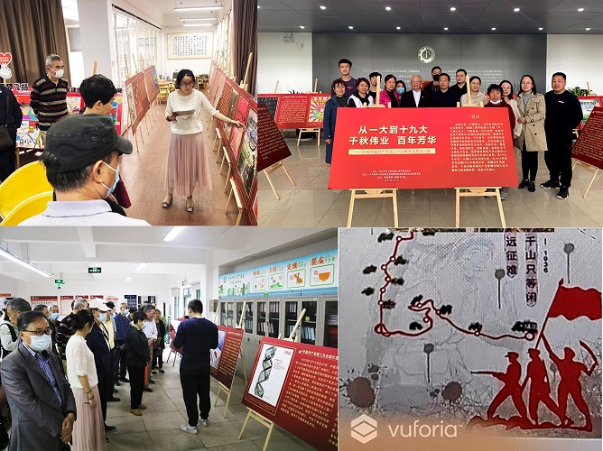 创意互动课。组织学生党员从党的百年风雨、百年奋斗、百年辉煌和奋进新时代的滚滚历史洪流中,从以奋进之东华筑梦祖国的时代目标中,汲取营养,激发灵感,创作讴歌党、讴歌祖国、讴歌社会主义的艺术作品。筑梦创设研究生党支部以22幅创意海报描绘党的百年奋斗征程,举办“从一大到十九大:千秋伟业,百年芳华”创意设计展览;智能制造党支部运用VR技术打造实境课堂,赋能党史学习教育“科技味”,引领师生穿越百年风雨,见证中国共产党带领中国人民不懈奋斗的光辉历程,镌刻百年初心。