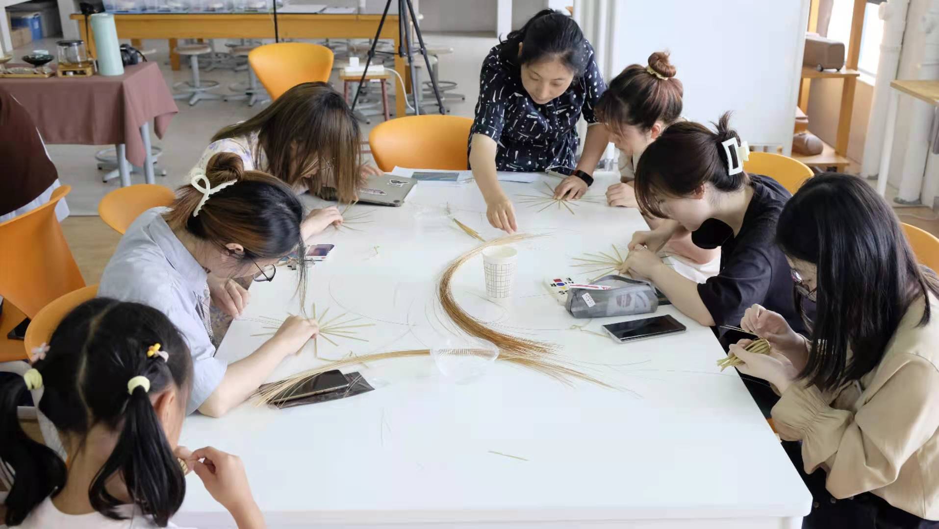 国家非遗竹编传承人程丽老师指导学生竹编