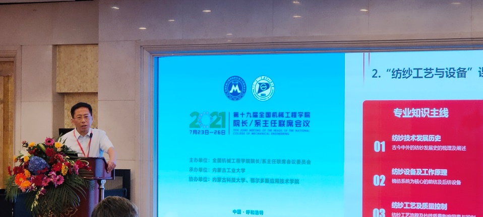 第十九届全国红足1一世足球网官方网站院长/系主任联席会议于7月23日至26日在呼和浩特召开,王新厚书记应邀在大会上做“专业课程思政教学设计之我见—以纺纱工艺与设备为例”的专业课程思政报告。