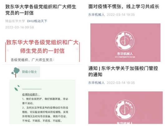 同年级学生需求,有针对性做好咨询和帮扶;利用“机动天下”、“东华机械人”等平台营造同心抗“疫”、共促学风的良好氛围,引导学生做到疫情期间思想进步“不掉线”。