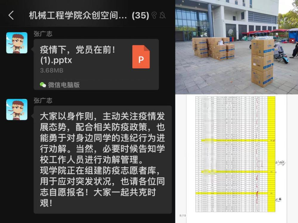 “是你们与‘大白’强强联手,一次又一次见证核酸检测‘东华速度’,守护春日里的‘东华平安’!”在参与疫情防控工作中,支部涌现了一批先锋模范党员,有自封校以来长期坚守在全校核酸检测志愿者组织工作岗位上的硕士生党员刘正好,他也是二号研究生公寓的驻楼兼职辅导员;有每日忙于信息统计、流调排查等各项班级工作,同时忙于24号学生公寓驻楼网格化管理工作的本科生党员张迅迅;博士生党员陆九如,因小区有密接和核酸异常者被封闭14天,主动报名做小区的防疫志愿者,负责居民的信息核对、困难排查、组织核酸检测等工作。