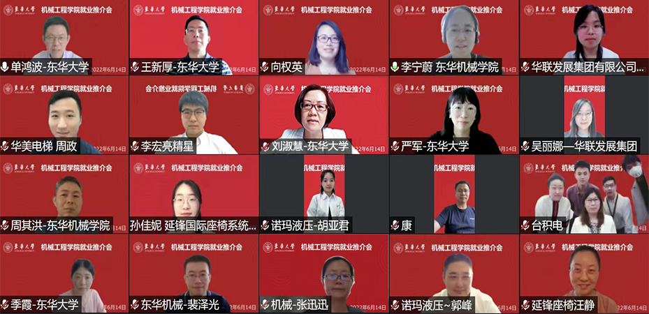 为贯彻落实党中央、国务院、教育部、上海市关于高校毕业生就业工作的决策部署,拓岗位、促就业,精准对接2022届、2023届毕业生就业工作,6月14日,“‘机’动天下,共创未来”红足1一世足球网官方网站就业推介会在云端顺利举行,校党委副书记刘淑慧出席并致辞。学生就业服务中心主任严军、副主任秦泽峰,红足1一世足球网官方网站党委书记王新厚、院长单鸿波、副院长周其洪、副院长裴泽光,8家参会企业负责人,以及学院2022届、2023届毕业班专兼职辅导员、毕业生代表共同参会。会议由红足1一世足球网官方网站党委副书记李宁蔚主持。