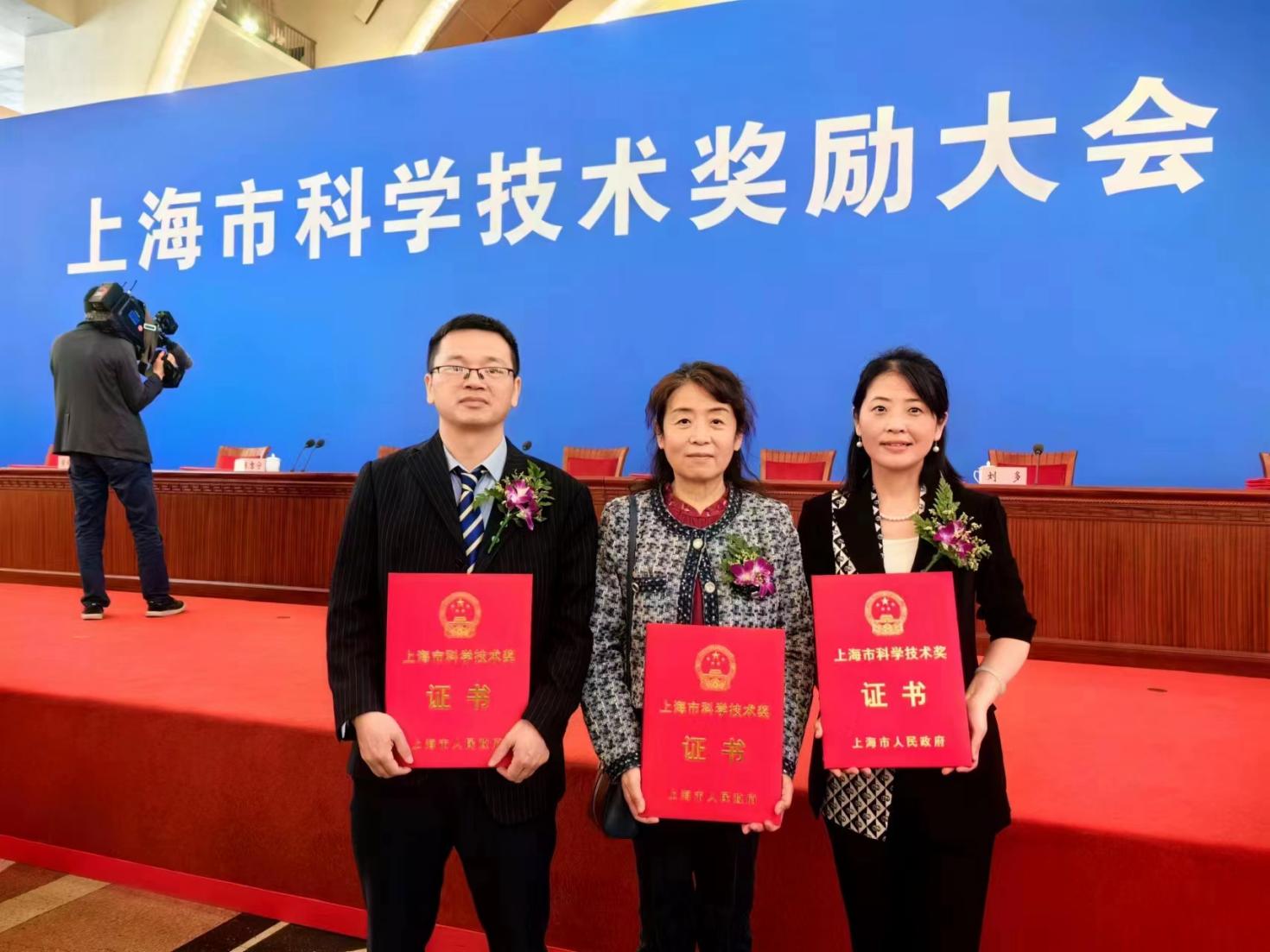 获奖代表2022上海市科学技术奖励大会上合影(左起彭倚天、李蓓智季霞