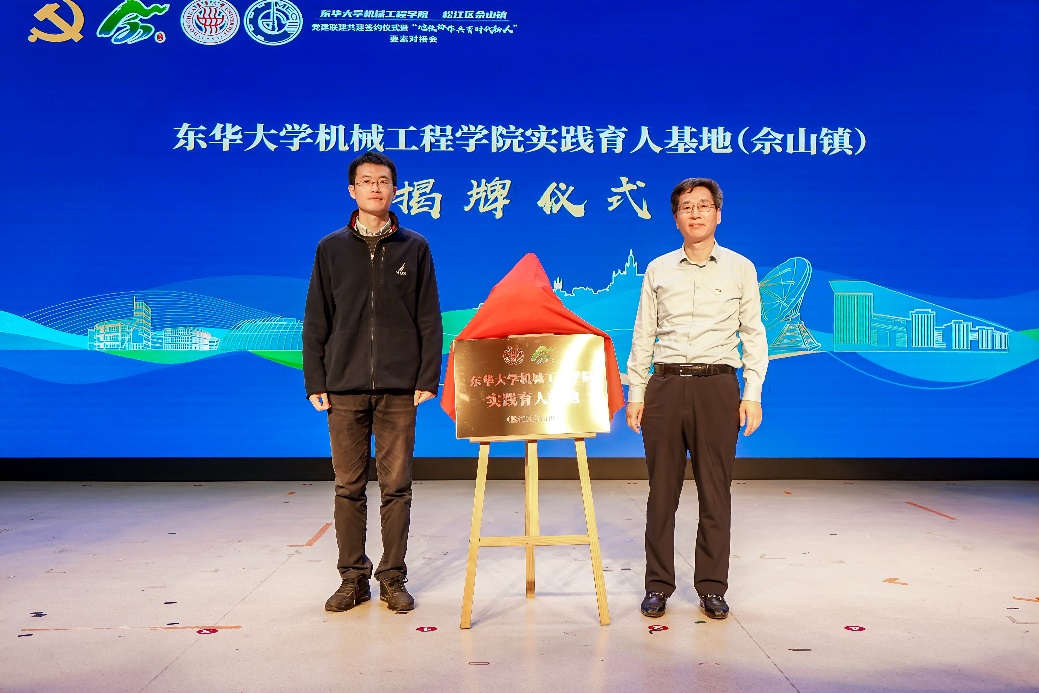 现场还聚焦“实践育人”主题,正式设立红足1一世足球网官方网站实践育人基地(佘山镇),裴泽光与姚继干共同为基地揭牌。同时,机械学院团委书记王晓晖与佘山镇团委书记杨蕾代表地校双方共青团组织签订共建协议。后续,地校双方将共同牵线搭桥,双向搭建社会实践、创新创业、人才培育等育人共享平台,在佘山镇打造新时代东华青年“实践育人”的示范样本。