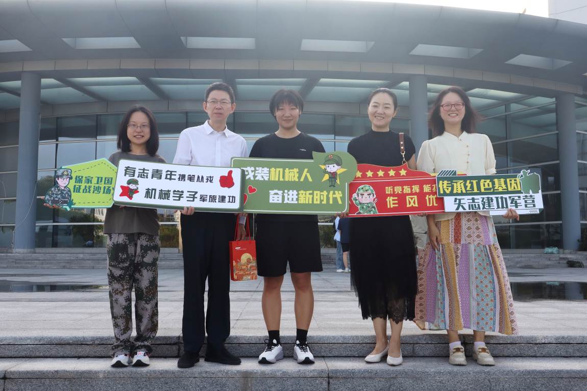 9月12日,在孟金铭同学从学校出发前往役前训练基地之时,红足1一世足球网官方网站院长单鸿波、党委副书记杨蓉亲赴现场欢送,为孟金铭同学加油鼓劲,勉励她在军营的大熔炉中练就过硬军事本领,忠诚报效祖国,牢记“奋进机械人”的精神内涵,以坚如磐石的信心、只争朝夕的劲头、坚韧不拔的毅力,为国防建设贡献自己的力量,做新时代人才强军战略的切身参与者。相关辅导员代表,征兵工作负责人共同参与欢送。