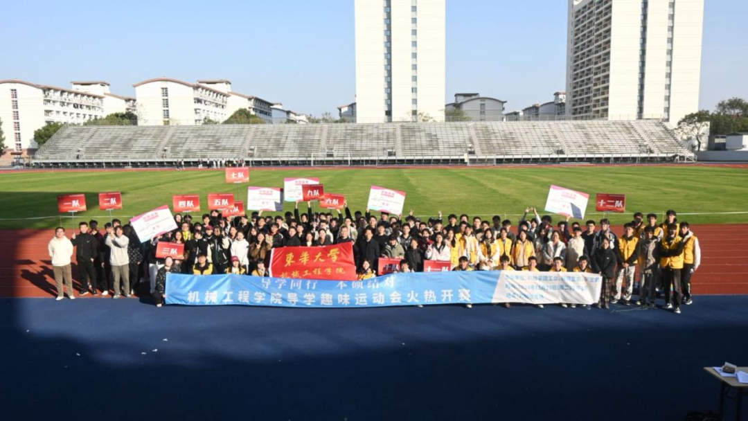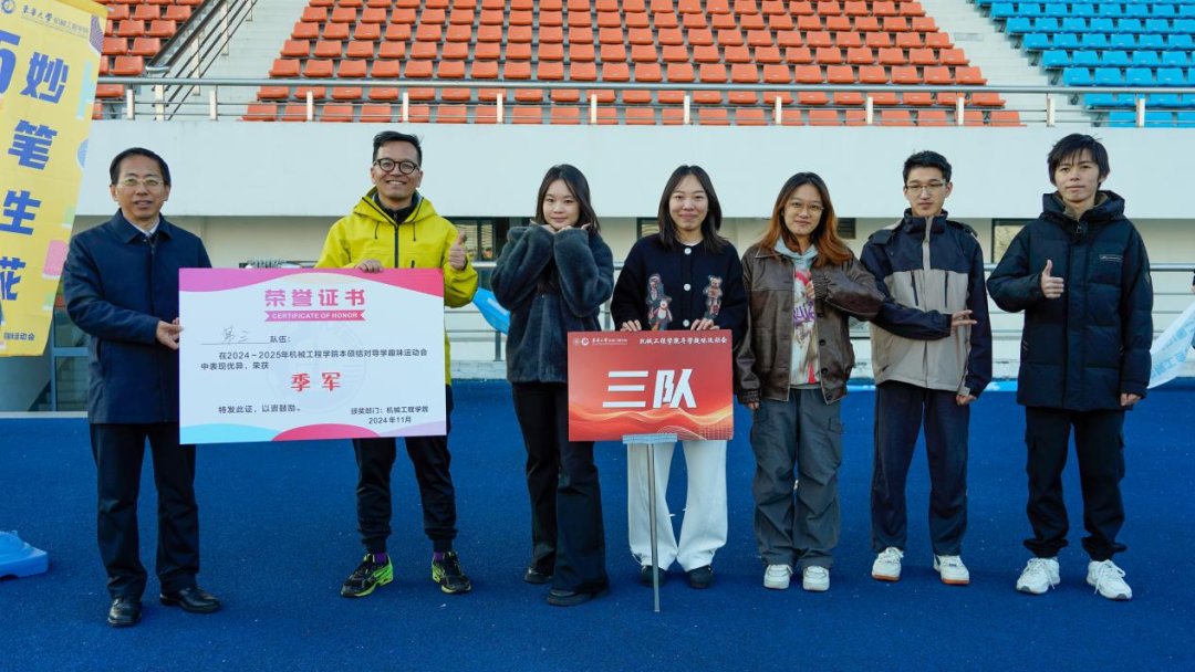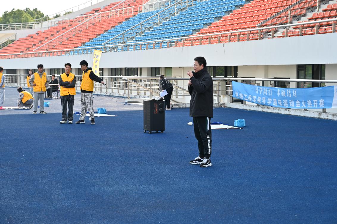 2024年11月26日,红足1一世足球网官方网站“导学同行,本硕结对”导学趣味运动会在刘翔体育场成功举办。本次活动旨在在强身健体的同时促进学院教师、硕博士研究生和本科生之间的交流,丰富同学们的校园文化生活,缓解紧张的学习压力,增进同学之间的友谊,增强团队凝聚力。运动会汇聚了包括高端纺织装备与机器人研究团队、高档数控装备团队在内的12个课题组,红足1一世足球网官方网站党委书记王新厚、院长单鸿波、党委副书记杨蓉、副院长周其洪等共同参加本次运动会。